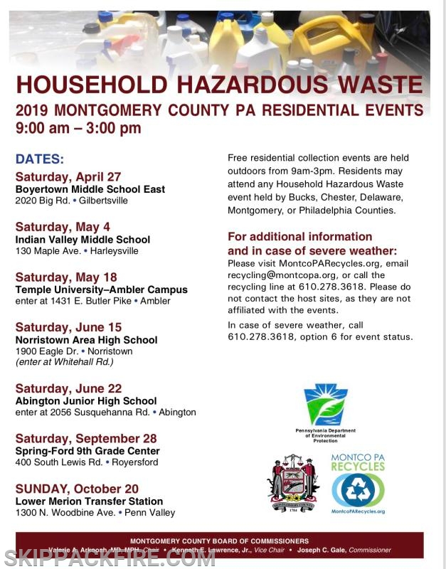 | See details here for 2019 Household Hazardous Waste Materials collections this year in Montgomery County. |